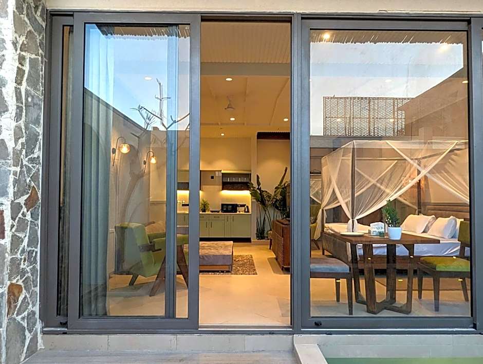 This villa features a pool with a view, hot tub and spa bath. Boasting a private entrance, this air-conditioned villa features 1 living room, 2 separate bedrooms and 2 bathrooms with a shower and a hairdryer. Meals can be prepared in the well-fitted kitchenette, which has a stovetop, a refrigerator, kitchenware and a microwave. This villa has soundproof walls, flat-screen TV with streaming services, garden views, as well as chocolate for guests. The unit has 3 beds.